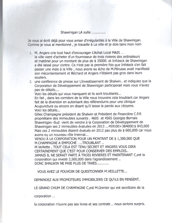 Le maire de Shawinigan sentait que la pression s'accentuait pour attirer Shalwin à Trois-Rivières. Il a donc pris le téléphone et demandé un entretien avec M. Champagne. Quelques minutes plus tard, il était assis dans son bureau pour mousser le discours de l'appartenance locale.